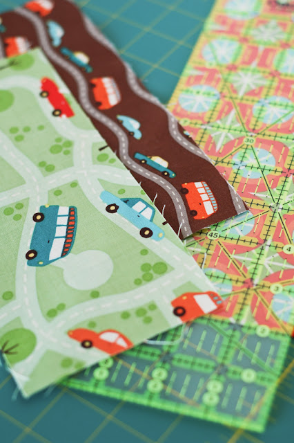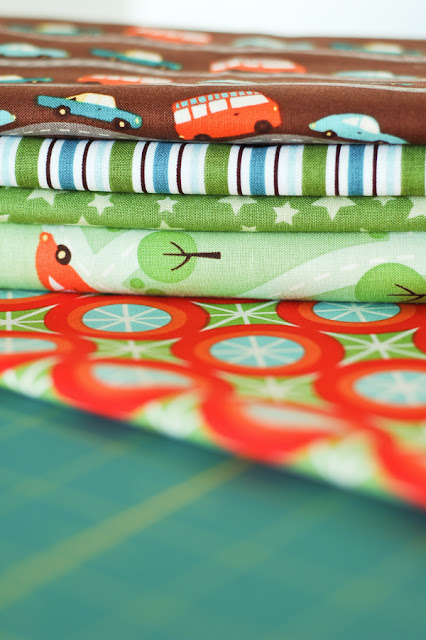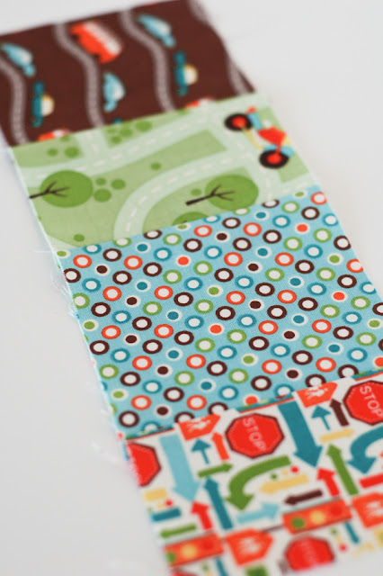 I'm using the same brick pattern as the girl's quilts. It's so simple and I love how it shows each of the fabric patterns. I did make the blocks a tad bit larger for this one.