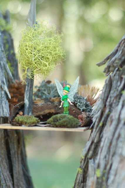 The fairies live in the meadow behind Grandma and Grandpa's cabin in Butte Meadows, California. There's even one of their houses on the shelf in the front room. Ella tried her Tinkerbell in it.