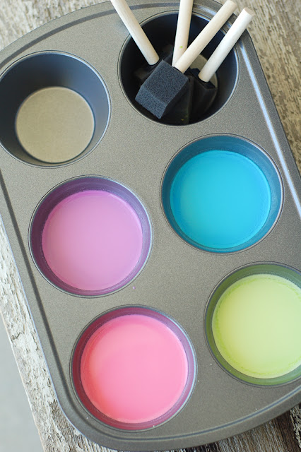 When Ella got home, we made sidewalk paint. It's the paint version of sidewalk chalk. It was so simple to mix up a batch and kept us busy for quite awhile.