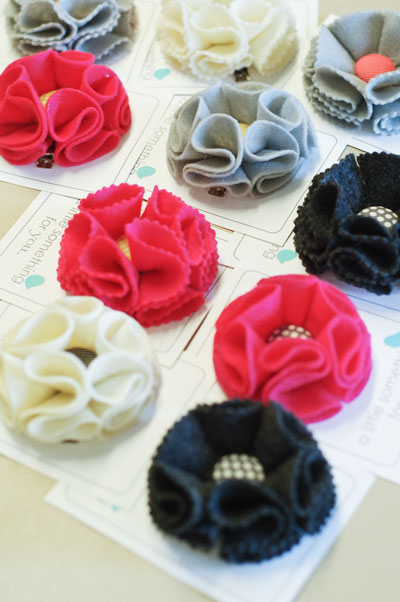 | After making fifteen hair accessories, Sandra started teaching Melissa. :) |
